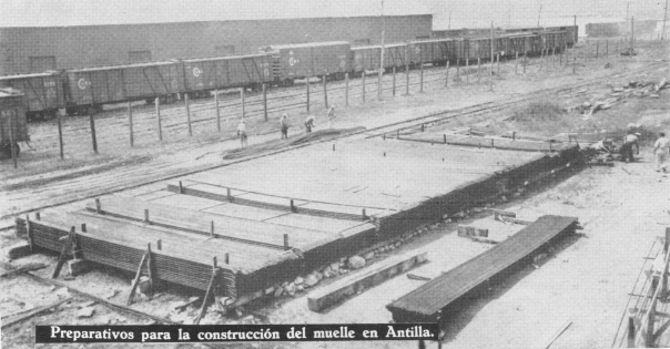 | Preparativos para la construcción del muelle en Antilla. | Preparations for the construction of the wharf at Antilla. | ||||
